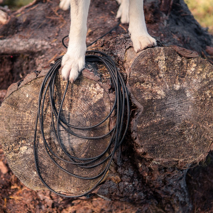 Deze lijn is gemaakt van dun gerold, plantaardig gelooid leer en verkrijgbaar in bruin of zwart. Dankzij het verfijnde ontwerp weegt een lijn van 10 meter nog geen 300 gram. Zo licht dat je hond nauwelijks merkt dat hij hem draagt.