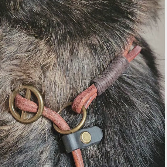 Deze sliplijn combineert lijn en halsband in één elegant ontwerp. Gemaakt van dun gerold leer, waardoor de lijn licht van gewicht is en soepel in gebruik. De vaste lengte van 180 cm (gemeten vanaf de sliphalsband tot aan het handvat) biedt een prettige balans tussen controle en bewegingsvrijheid.